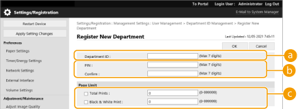 Klõpsake [User Management]  [Department ID Management].