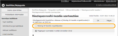 Ha rendszergazdai jogosultságokkal rendelkező felhasználóként jelentkezik be, a rendszerkezelői azonosítót és PIN-kódot a rendszer automatikusan kiosztja, és ezt kezeli Részlegazonosítóként.