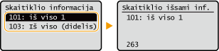 Galite tikrinti bendrą išspausdintų puslapių skaičių. Spaudinių skaičių sudaro atmintyje ir sąraše esančios medijos spaudiniai ir duomenų iš kompiuterio spaudiniai.