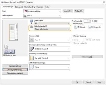 Samsvar [Utskriftsstørrelse] i skriverdriveren med størrelsen på papiret som det skal skrives ut på.