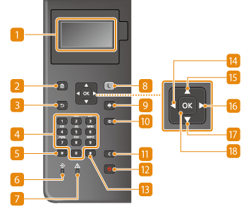 Przycisk należy nacisnąć po wprowadzeniu identyfikatora i kodu PIN w celu zalogowania się, gdy włączone jest zarządzanie identyfikatorami wydziałów. Ponownie naciśnięcie tego przycisku po zakończeniu pracy z urządzeniem umożliwia wylogowanie się.