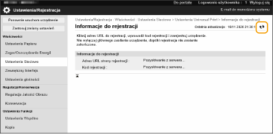 Kliknij łącze URL wyświetlane dla opcji [Adres URL strony rejestracji].