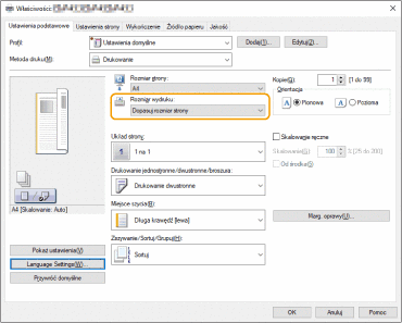 Dopasować ustawienie [Rozmiar wydruku] w sterowniku drukarki do rozmiaru papieru przeznaczonego do druku.