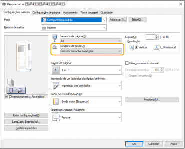 Faça corresponder o [Tamanho da saída] no controlador de impressora ao formato do papel em que pretende imprimir.