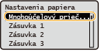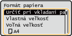 Keď si často používané formáty papiera zaregistrujete pod tlačidlá <S1> až <S5>, môžete ich potom vyvolať výberom položky <Uložené formáty>.Uloženie papiera ľubovoľného formátu (papier vlastného formátu)
