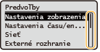Môžete zmeniť množstvo nastavení týkajúcich sa displeja, napríklad jazyk displeja: <Nastavenia zobrazenia>