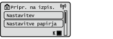 Izberite <Nastavitev>, da prikažete zaslon <Meni>. Številne nastavitve naprave, kot so nastavitve za upravljanje, nastavitve prikaza in omrežne nastavitve, konfigurirate tako, da najprej izberete <Nastavitev>.