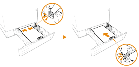 Tryck på låsspärren och dra pappersledarna inåt tills de ligger an mot papperets kanter.
