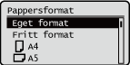 Skärmbilden för att ange pappersformat och papperstyp visas.