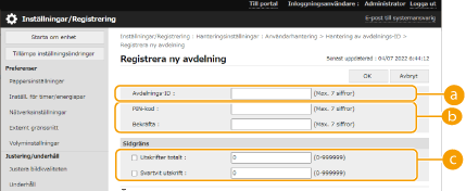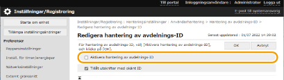Välj [Aktivera hantering av avdelnings-ID].