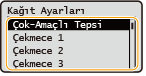Kağıt çekmecesini açtığınızda geçerli kağıt ayarlar ekranın en üstünde görüntülenir.