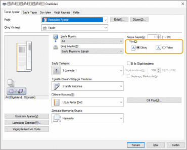 Uygulamanın yazdırma ayarları ekranında orijinalin yönünü seçin.