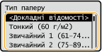 Щоб переглянути докладні параметри для типу паперу, виберіть <Докладні відомості>