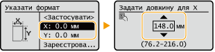 | Виберіть <X> або <Y>, щоб зазначити довжину кожної сторони за допомогою цифрових клавіш або клавіш  /  . |