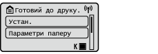 Виберіть <Уст.>, щоб відобразити екран <Меню>. Багато налаштувань апарата, таких як параметри керування, відображення, налаштування та параметри мережі, налаштовано за допомогою в першу чергу <Уст.>.