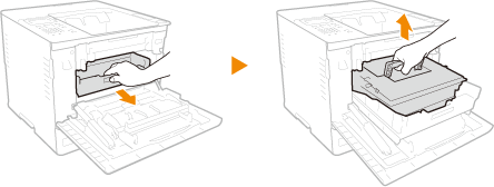 Витягніть лоток картриджа з тонером, утримуйте ручку картриджа з тонером і потягніть його догори.