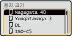 수동 급지대에 용지 넣기용지 크기 및 종류 지정 화면이 표시됩니다.