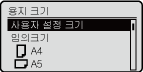 <임의크기 시 불일치 검지>표시된 용지 크기가 적재된 용지 크기와 다른 경우 용지가 바르게 적재되지 않을 수 있습니다. 용지를 다시 넣으십시오.