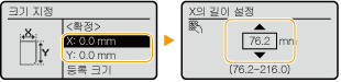| <X> 또는 <Y>를 선택하고 숫자 키 또는  /  를 사용하여 양쪽의 길이를 지정합니다. |