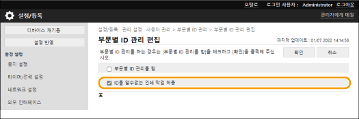 부서 ID 관리를 지원하지 않는 프린터 드라이버에서 인쇄 작업을 수락하려면 이 확인란을 선택합니다.