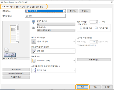 필요에 따라 탭을 전환하여 원하는 인쇄 설정을 지정합니다.