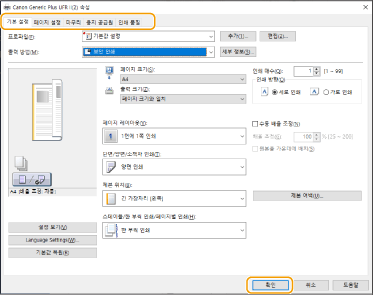 필요에 따라 인쇄 설정을 지정하고 [확인]를 클릭합니다.