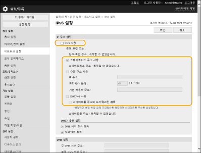 [IPv6 사용]을 선택하고 필요한 설정을 구성합니다.
