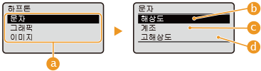| 이미지 종류 설정 변경 대상을 선택합니다. 대상은 <문자>의 경우 텍스트, <그래픽>의 경우 라인이나 그림, <이미지>의 경우 사진과 같은 이미지입니다. |