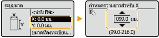 | เลือก <X> หรือ <Y> เพื่อระบุความยาวของแต่ละด้านโดยใช้ปุ่มตัวเลขหรือ  /  |