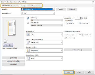 สลับแท็บตามความจำเป็นเพื่อระบุการตั้งค่าการพิมพ์ที่ต้องการ