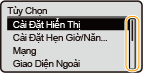 Bạn có thể thay đổi nhiều cài đặt liên quan đến màn hình, như ngôn ngữ màn hình: <Cài Đặt Hiển Thị>