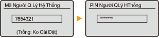 Bạn cũng có thể thực hiện nhập bảy chữ số đối với Mã người quản lý hệ thống và Mã PIN người quản lý hệ thống. Để biết thêm thông tin, hãy liên hệ với đại lý hoặc đại diện dịch vụ của bạn.