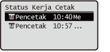 1 | Dalam <Log Kerja>, pilih item pilih dokumen untuk menyemak sejarahnya.<OK> dipaparkan apabila dokumen berjaya dicetak dan <Error> dipaparkan apabila dokumen gagal dicetak kerana ia telah dibatalkan atau terdapat beberapa ralat. ![]() Memaparkan maklumat terperinci tentang dokumen. |