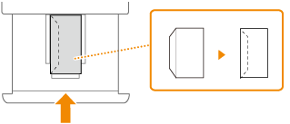 Load the envelopes as indicated below, with the front side of the envelopes (the side without the glued areas) face up (recommended).