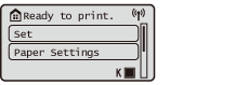 Select <Set> to display the <Menu> screen. Many of the settings of the machine, such as the management settings, display settings, and network settings, are configured by selecting <Set> first.