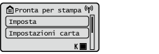 Selezionare <Imposta> per visualizzare la schermata <Menu>. Molte delle impostazioni della macchina, come le impostazioni di gestione, le impostazioni di visualizzazione e le impostazioni di rete, vengono configurate selezionando prima <Imposta>.