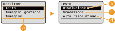 Il metodo può essere impostato per ciascun tipo di immagine di un singolo documento. Selezionare il tipo di immagine con  /  selezionare il metodo per riprodurre i mezzitoni. |