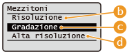 | <Risoluzione> Produce immagini stampate con gradazioni e contorni più regolari. Questa modalità è adatta per la stampa regolare di figure e grafici che utilizzano la gradazione. |