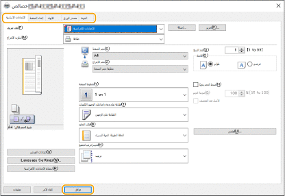 قم بتبديل علامات التبويب حسب الضرورة لتحديد إعدادات الطباعة المطلوبة.