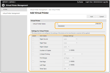 Inprimagailu birtualak LPD inprimaketa edo FTP inprimaketa erabiltzeko aukera ematen dizu aldez aurretik inprimatze-ezarpenak inprimagailu birtual gisa erregistratuta. Adibidez, ezarpenak aldez aurretik erregistratuz gero, besteak beste, paper-mota, kopia-kopurua eta bi aldeetatik inprimatzea, ez da beharrezkoa lan bakoitzarentzat ezarpen horiek zehaztea.