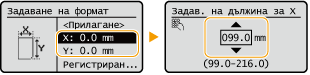 | Натиснете <X> или <Y>, за да въведете дължината на всяка страна чрез числовите бутони или  /  . |