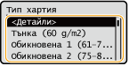 За да проверите подробните настройки за даден тип хартия, изберете <Детайли>