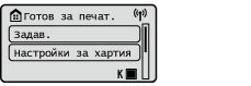 Изберете <Задаване>, за да се покаже екранът <Меню>. Много от настройките на устройството, като настройките за управление, настройките на дисплея и мрежовите настройки, се конфигурират като първо изберете <Задаване>.