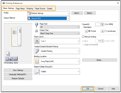 Задайте необходимите настройки за отпечатване и щракнете върху [OK].