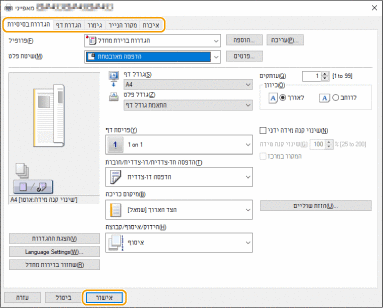 ציין את הגדרות ההדפסה כנדרש, ולחץ על [OK].