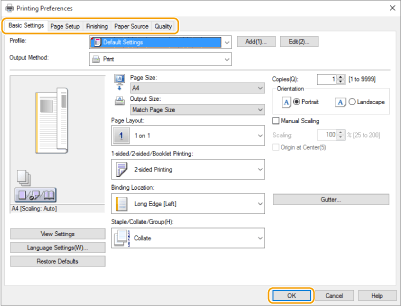 Norādiet nepieciešamos drukas iestatījumus un noklikšķiniet uz [OK].