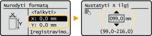 Pasirinkite <X> arba <Y>, kad nurodytumėte kiekvienos kraštinės ilgį naudodami skaičių mygtukus arba  /  .