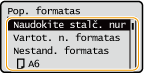 Nurodykite į popieriaus stalčių įdėto popieriaus formatą.