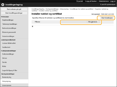 Klikk på [Bla gjennom...], angi filen (sertifikatet) som skal registreres, og klikk på [Lagre].