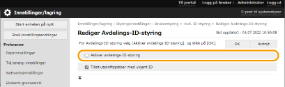 Velg [Aktiver avdelings-ID-styring].